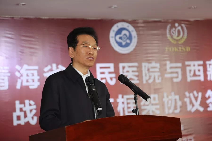 西藏自治區政協副主席、區工商聯主席阿沛·晉源代表自治區工商聯對青海省人民醫院和上海瑞金醫院各位專家的到來表示熱烈歡迎,為青海省人民醫院和开云体育醫院戰略合作簽約以及开云体育醫院高原健康研究中心正式成立表示熱烈祝賀。