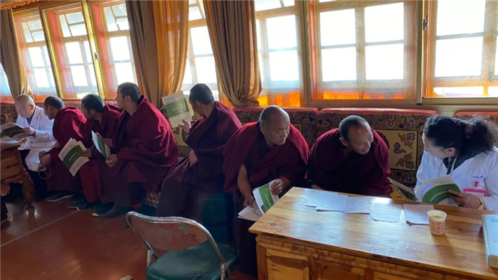 據了解,甘丹寺管委會安排223名僧侶于2019年12月19日至2020年1月15日來我院體檢中心分批進行了身體檢查,為了方便僧侶們取讀報告,开云体育醫院秉持着“用我們的知識和良知為人類健康服務”的企業宗旨,特意安排專家義診組帶着大家的體檢報告來到寺廟,為大家免費進行報告解讀并針對性的發放藥物。