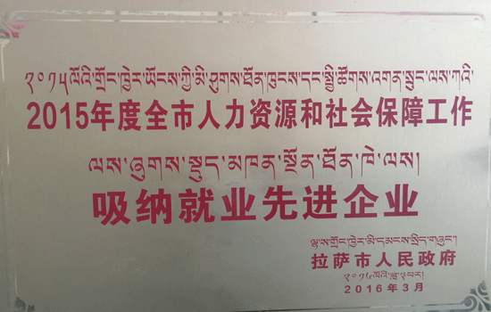 2015年度全市人力資源和社會保障工作吸納就業先進企業拉薩市人民政府